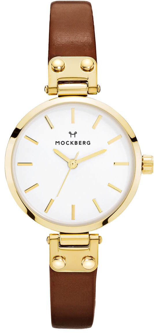 Mockberg Ilse Petite MO208 är en nättare klocka. Det är en klocka med guldplätering, armbandet är tillverkat av brunt läder och urtavlan är vit. Boettens bredd är 28 mm och tjockleken är 7,2 mm. Armbandets bredd är 13 mm. Denna kvartsklockan har ett japanskt Mioyta Super 2035 urverk. Vi erbjuder garanti upp till två år och din klocka skickas hem i originalboxen.