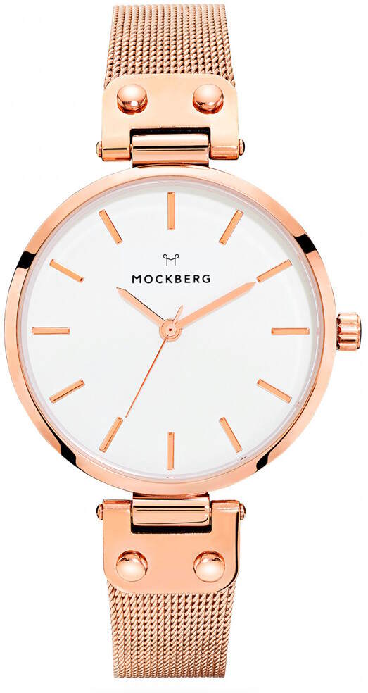 Mockberg Lily MO307 är en klocka med roséguldplätering. Kockan har roséguldpläterad mesh-armband och urtavlan är vit. Boettens bredd är 34 mm och tjockleken är 7,2 mm. Armbandets bredd är 13 mm. Denna kvartsklockan har ett japanskt Mioyta Super 2035 urverk. Vi erbjuder garanti upp till två år och din klocka skickas hem i originalboxen.