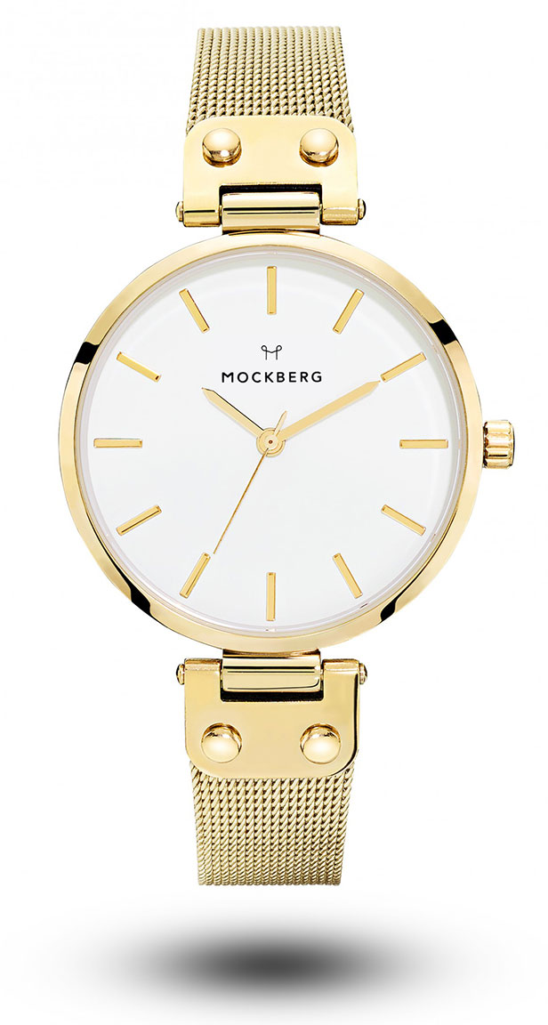 Mockberg Livia MO301 har en guldfärgad boett, ett guldfärgad mesh-armband och en vit urtavla. Boettens bredd är 34 mm och tjockleken är 7,6 mm. Armbandets bredd är 13 mm. Denna kvartsklockan har ett Japanskt Miyota Super 2035 urverk. Vi erbjuder garanti upp till två år och din klocka skickas hem i originalboxen.