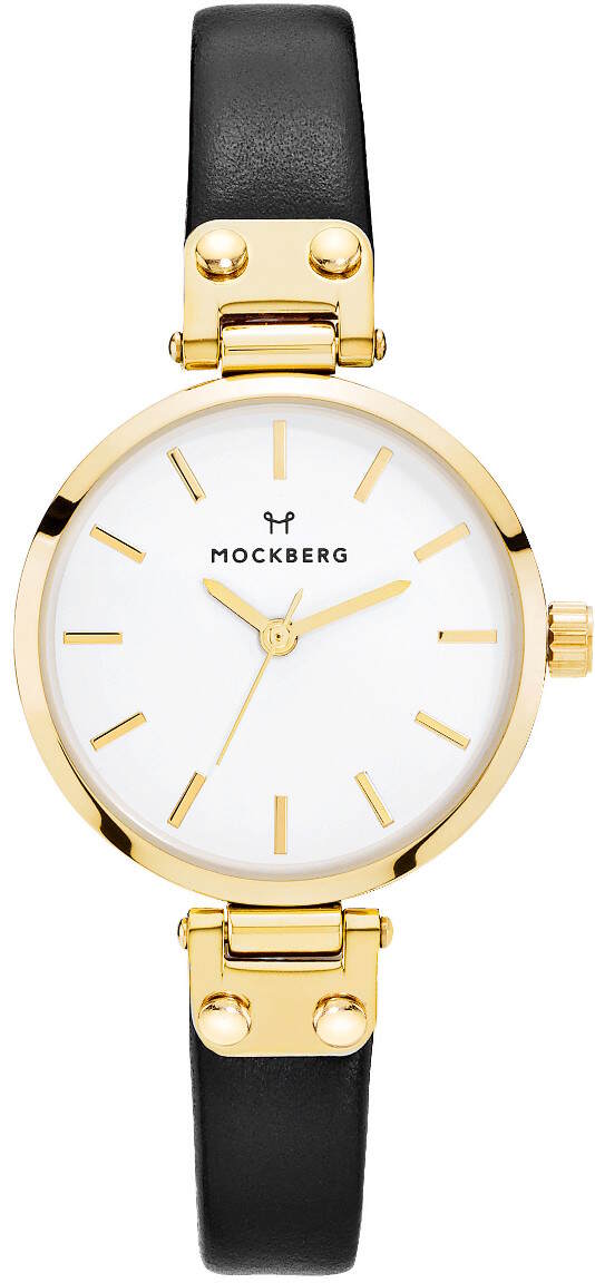Mockberg Saga Petite MO207 är en nättare klocka. Klockan har en guldfärgad boett och armbandet är tillverkat av svart läder. Urtavlan är vit. Boettens bredd är 28 mm och tjockleken är 7,2 mm. Armbandets bredd är 13 mm. Denna kvartsklockan har ett japanskt Mioyta Super 2035 urverk. Vi erbjuder garanti upp till två år och din klocka skickas hem i originalboxen.