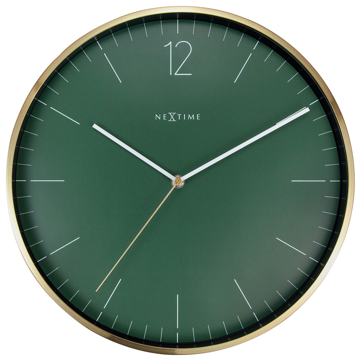 Grön NeXtime Essential Gold väggklocka 3252GN. Tillverkad i glas och metall. Diameter 35 cm. Väggur fungerar med AA batterier (OBS! Batterier ingår ej i priset). Vi erbjuder garanti upp till två år!
