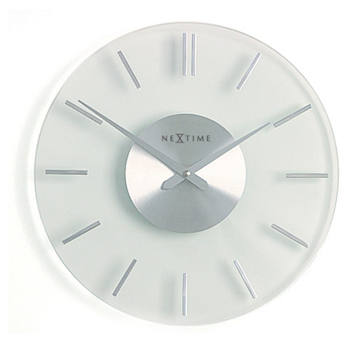 Vit NeXtime Stripe väggklocka 2632. Tillverkad i glas och rostfritt stål. Diameter 31 cm. Väggur fungerar med AA batterier (OBS! Batterier ingår ej i priset). Vi erbjuder garanti upp till två år!