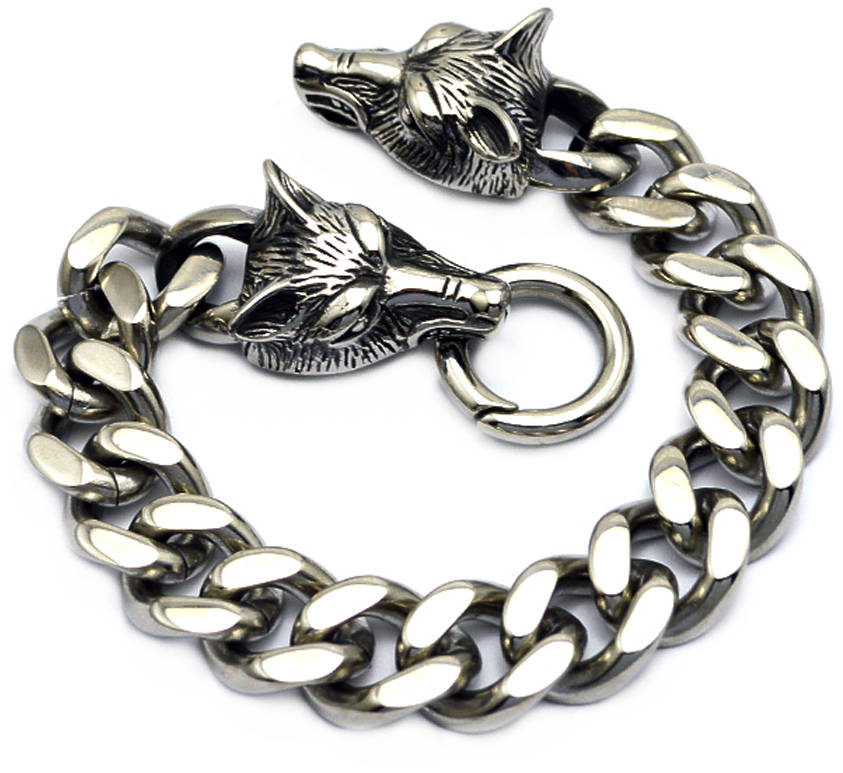 ‌Northern Viking Jewelry Steel Chain Wolf Head NVJRA012 armband är en tuff accessoar. Längden på kedjan är 22 cm och armbandet väger 98 gram. Tillverkat i rostfritt stål. Skickas hem i tillverkarens originalförpackning.