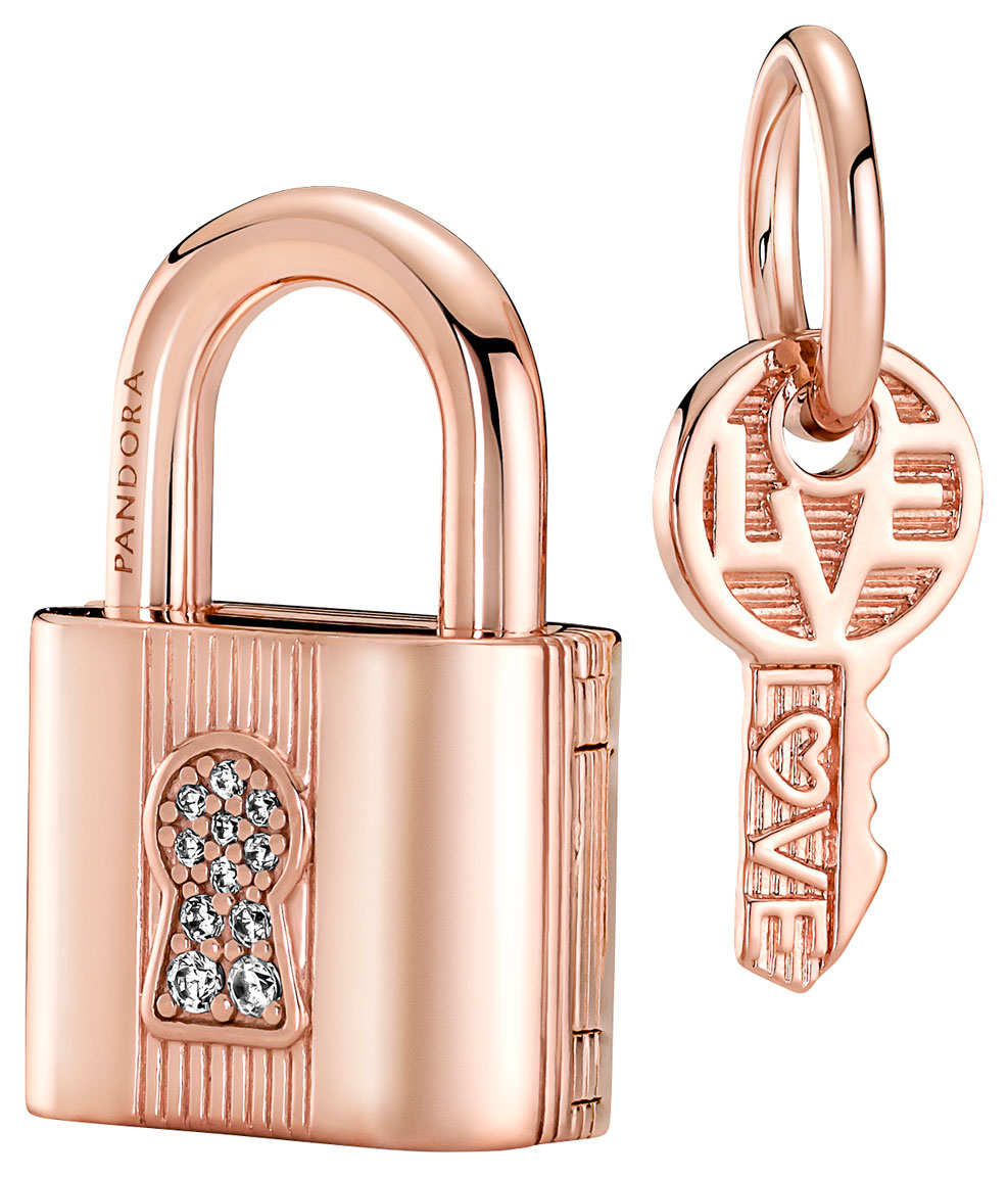 Pandora berlock dangle Padlock & Key 780088C01 är ett vackert Kärlekslås med nyckel i 14K guldpläterad metall blandning. Pandoras smycken levereras i tillverkarens original förpackning.