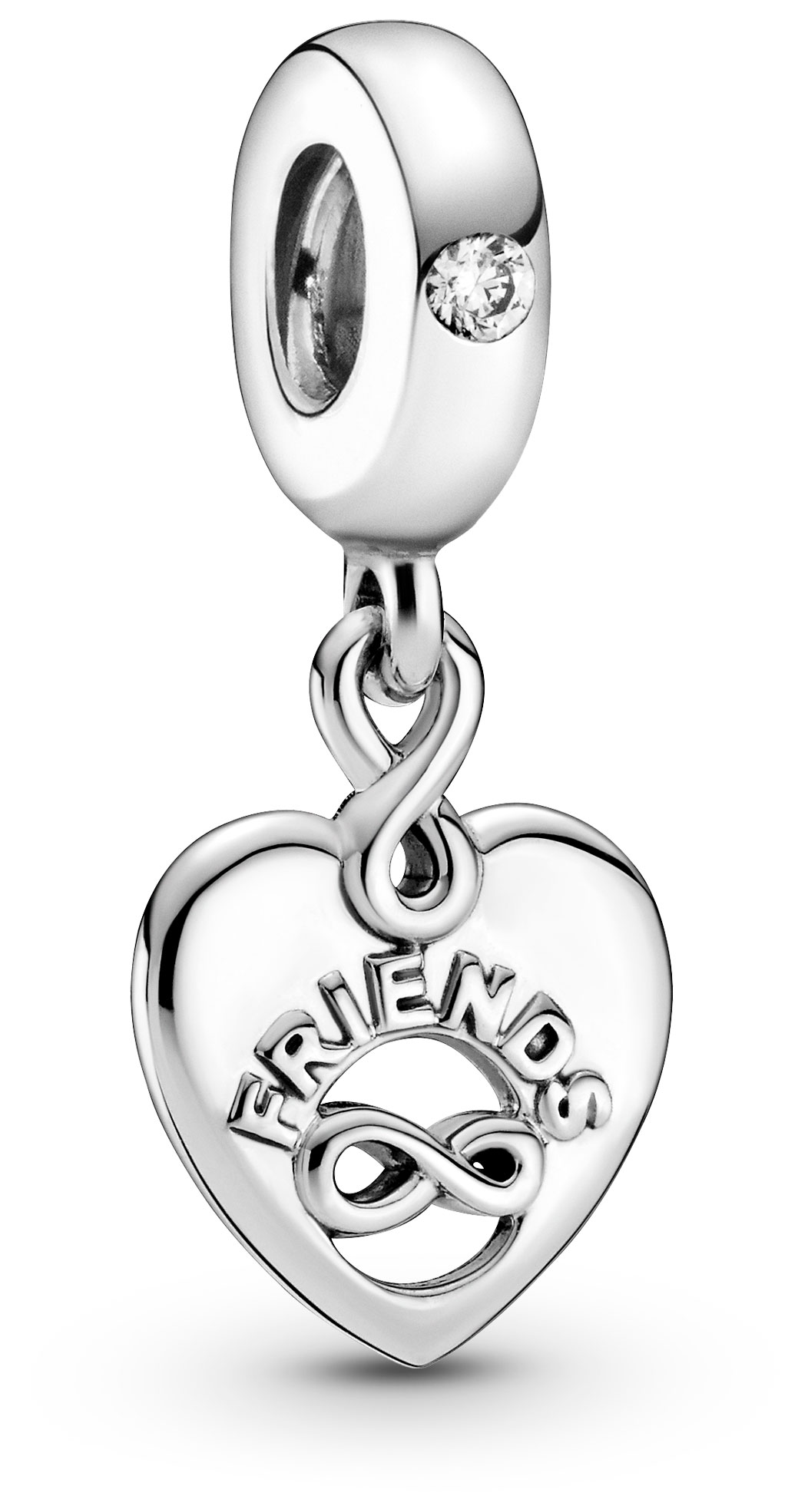 Pandora Friends Forever Heart 799294C01 är ett fint hängande vänskapssmycke. Hjärtberlock är i sterling silver och dekorerad med oändlighet symbol och texten "friends". Storlek 14,1 x 10,5 x 2,4 mm.