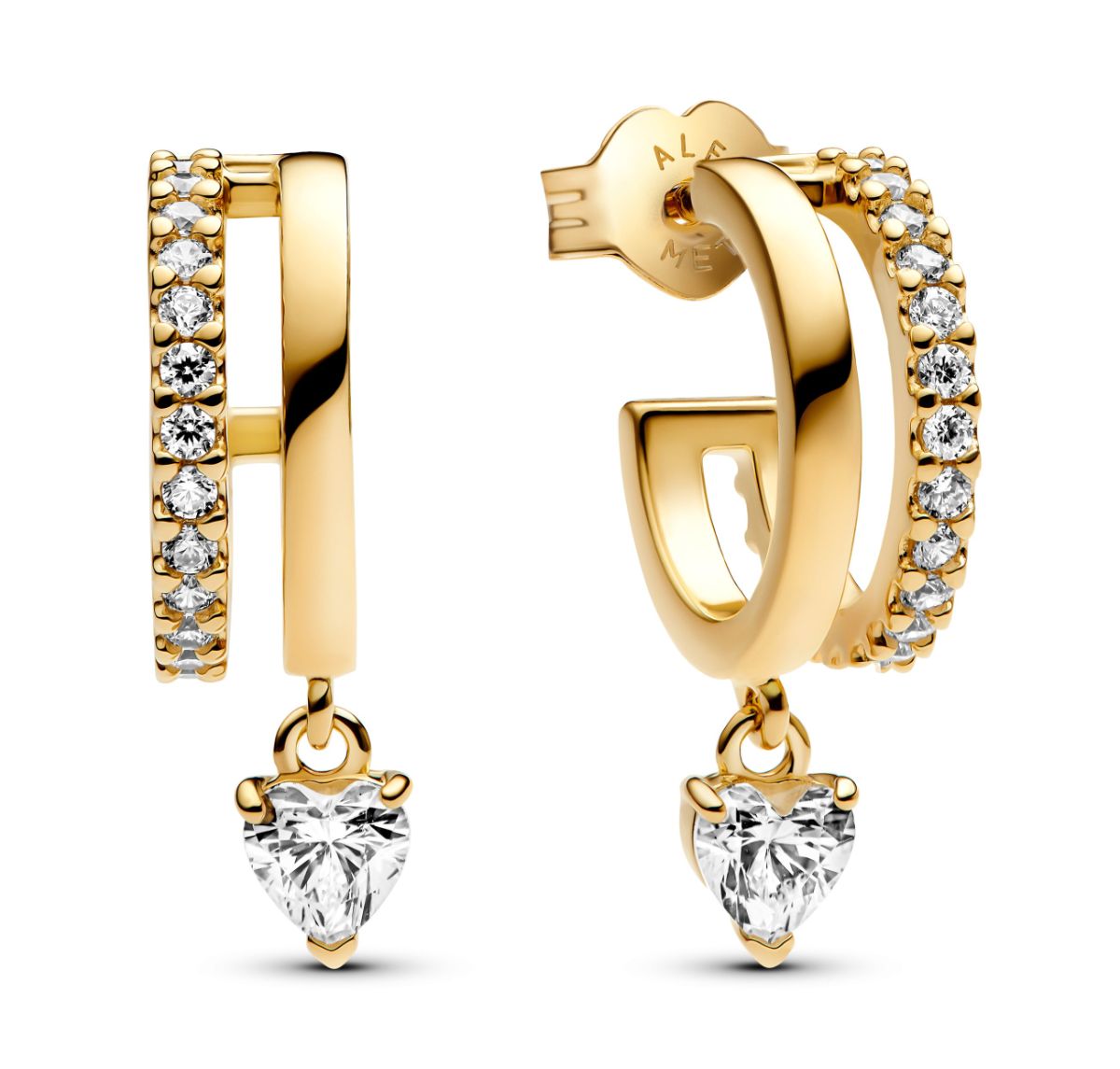Pandora Classic guldpläterade örhängen med hjärthänge 263685C01 är tillverkade av 14 karats guldpläterad metall och pryds av hjärtformade zirkonia. Pandora smycken levereras i tillverkarens originalask.