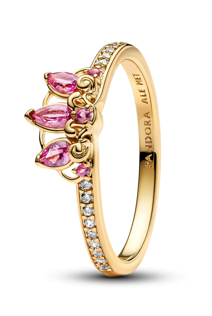 Pandora Disney x Pandora Rapunzel 163651C01 guldpläterad ring har en vacker krona utsmyckad med rosa kristaller och klara zirkonia. Disney ringen är en 14 karats guldpläterad metall. Du kan välja den storlek som passar dig i dropp-downmenyn. Pandora x Disney smycken levereras i tillverkarens originalförpackning.
