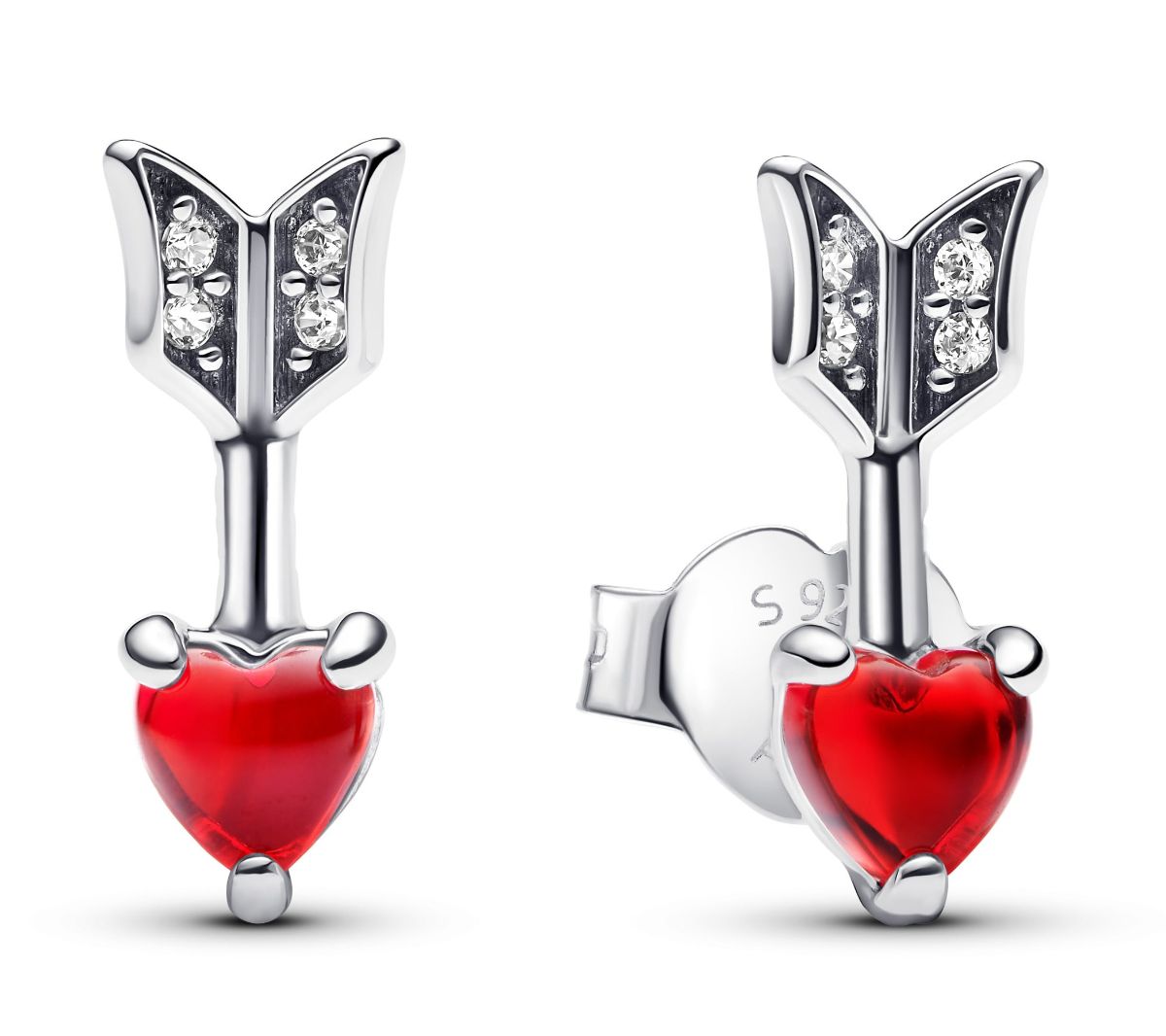 Pandora Love örhängen röd 293668C01 slår som en pil av kärlek. Pilörhängena är i sterlingsilver, utsmyckade med syntetiska zirkonia och äkta, röda hjärtformade Murano-glaskristaller. Pandora smyckena levereras i tillverkarens originalask.