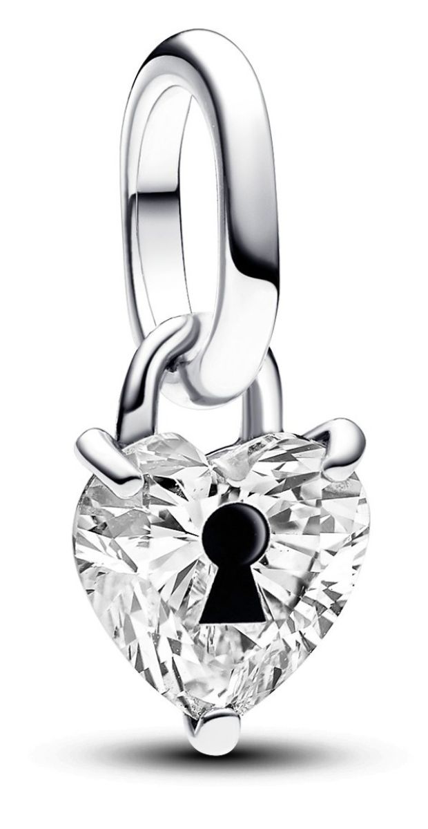Vem har nyckeln till ditt hjärta? Pandora ME Keyhole Heart Mini Dangle Charm Sterling silverberlock 793086C01 är ett smycke med kärlekslås som tema. Detta hjärthänge är den perfekta presenten till dig själv eller någon du tycker om, och du kan ge hjärtlåset till din älskade som en påminnelse om er koppling till varandra. Hjärtat är tillverkat av sterlingsilver och har en klar zirkonia. Pandora-smycket levereras i tillverkarens originalförpackning.