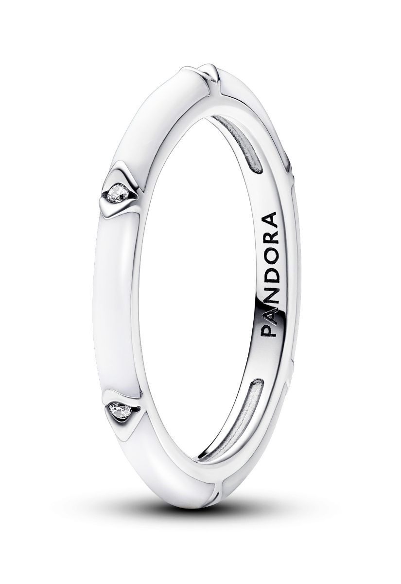 Pandora ME Stones & Enamel Ring Sterling silver Enamel 193089C01 med en ram omgiven av flera briljanta zirkonia och vit emalj. Ringen är tillverkad i sterlingsilver och är 2,7 mm i bredd. Pandora-ringar levereras i sin originalask.