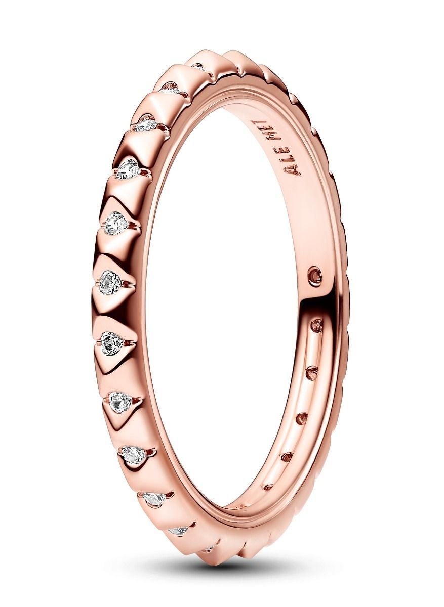 Pandora ME Pyramids 14k Rose gold-plated ring 182800C01 är en fin alliansring med ett grafiskt utseende. Ytan är dekorerad med briljanta zirkonia och 14 karat roseguldplätering. Du kan välja den storlek som passar dig från drop-downmeny. Pandora-smycken levereras i tillverkarens originalförpackning.