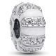 Pandora 793785C01 rund berlock är tillverkad i sterlingsilver och pryds med klara zirkonier. Den är dessutom behandlad med skimrande vit emalj och silikon för extra fäste.