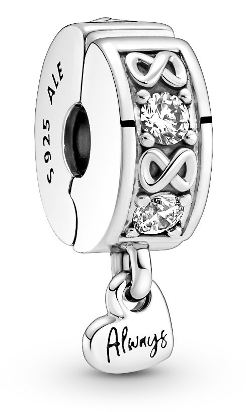 Pandora Moments Family Always Pavé Sterling silver klämstopp 791151C01 är den perfekta morsdagspresent som berikar och skapar glädje i livet . Denna berlocken är prydd med texten "always"och berlocken är tillverkad i sterling silver.