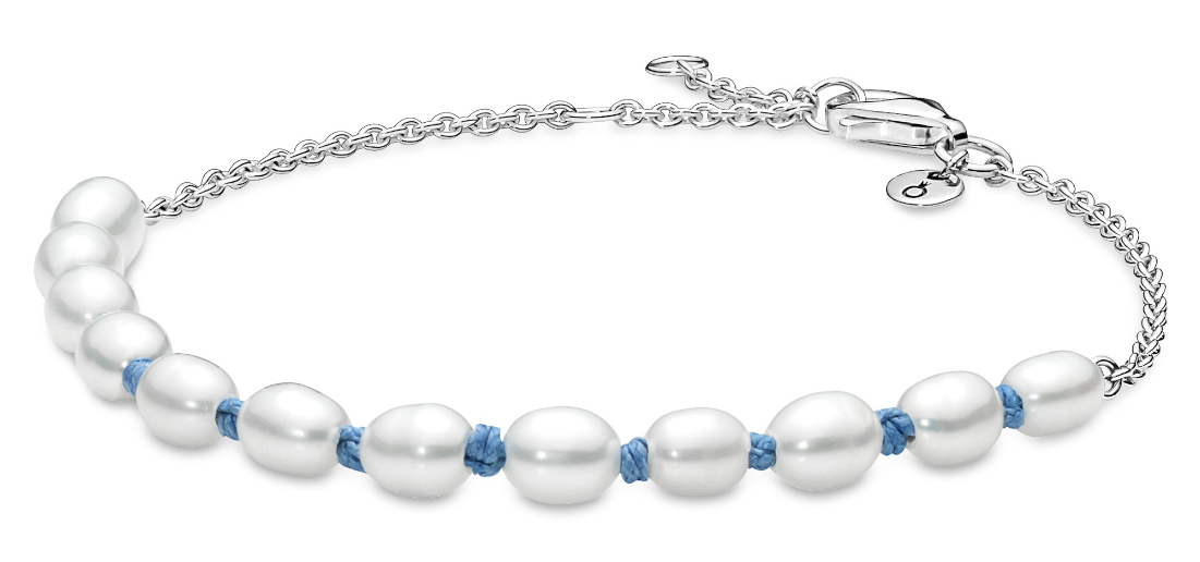 Pandora Moments Freshwater Cultured Pearl Blue Cord Chain armband 591689C01