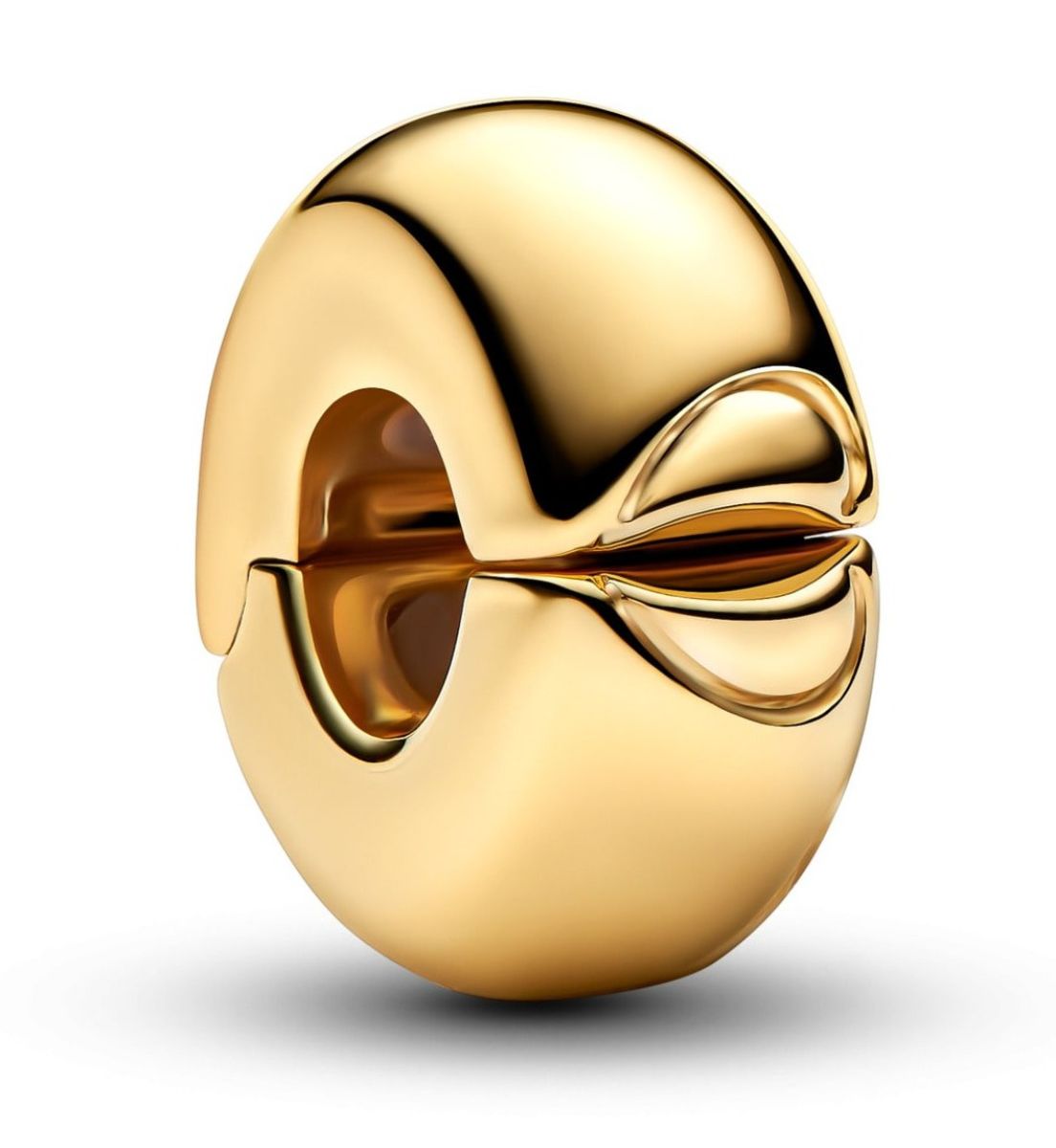 Pandora Moments guldpläterade runda klämmstop 763678C00 är tillverkad av 14 karats guldpläterad metall och är dekorerad med läppar.