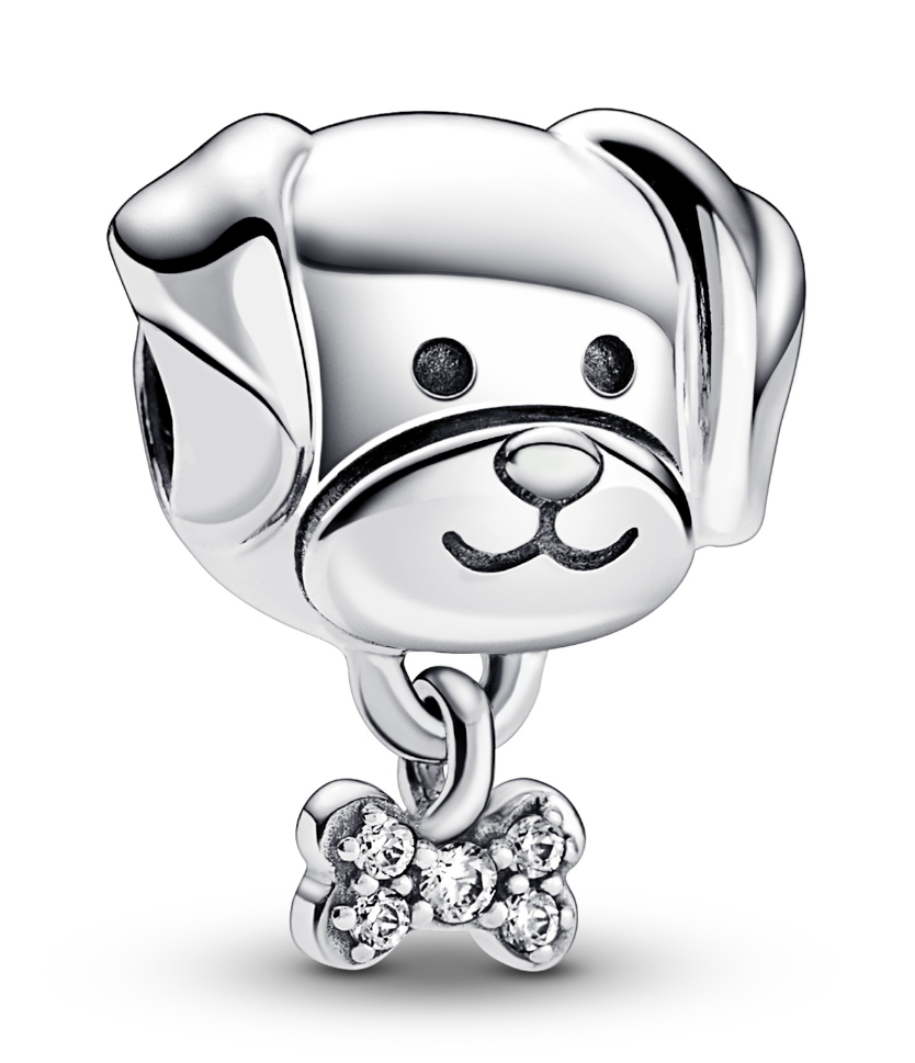 Pandora Moments Pet Dog & Bone Sterling silverberlock 792254C01 är varje hundälskares favorit smycke. Det här hundens hänge är dekorerat med syntetiska zirkoner. Pandora-smycken levereras i originalskrinet från tillverkaren.