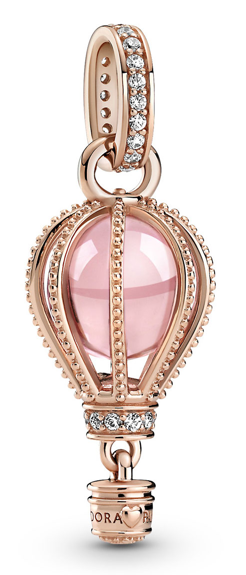 Pandora Rose Hot Air Balloon 789434C01 berlock har en 18K roséguldplätering och är dekorerad med en ljuspink kristall.