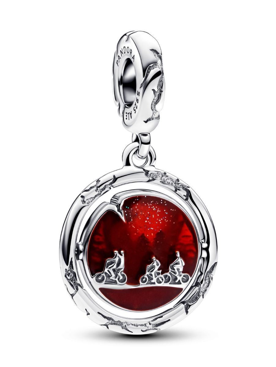 Pandora Stranger Things silver spinning dangle glow in the dark glittery green glittery red enamel 793563C01 är sterling silver och berlocken är utsmyckad med färgstark emalj.