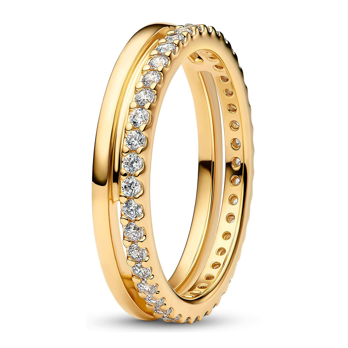 Pandora 163799C01 är en ring tillverkad av en metallegering med 14 karats guldplätering och infattad med gnistrande zirkoner. Ringen kan bäras ensam eller kombineras med andra ringar. Den finns i flera olika storlekar som du kan välja mellan i rullgardinsmenyn. Pandora-ringarna levereras i tillverkarens originalask.