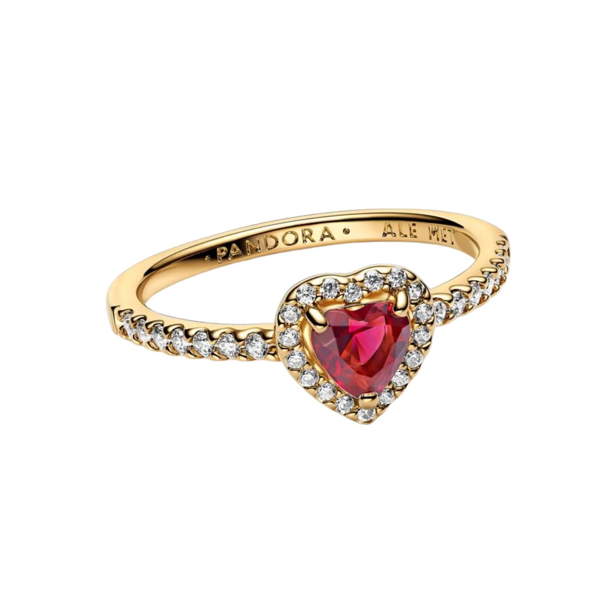 Pandora Timeless guldpläterad hjärtering 168421C02 är en romantisk och gnistrande blickfångare. Denna halo-ring är tillverkad av guldpläterat metall, med en röd hjärtformad kristall som glänser i mitten. Runt kristallen och längs ringskenan finns pavéinfattade klara stenar som ger smycket en lyxig känsla och extra lyster.