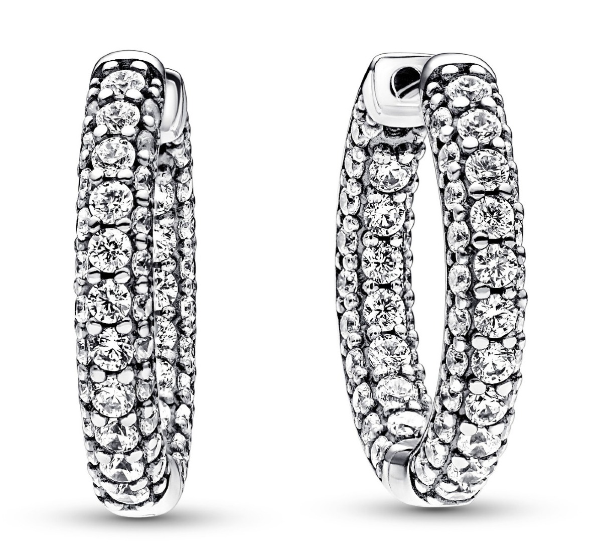 Pandora Timeless Pave Single-row 292624C01 sterling silver örhängen är pläterade med klara syntetiska zirconia. Örhängena är perfekta för både vardag och fest och den klassiska Pave-infattningen ger smyckena en lyxig look. Storlek: 18,28 mm Pandora örhängen levereras i original smyckesask från tillverkaren.