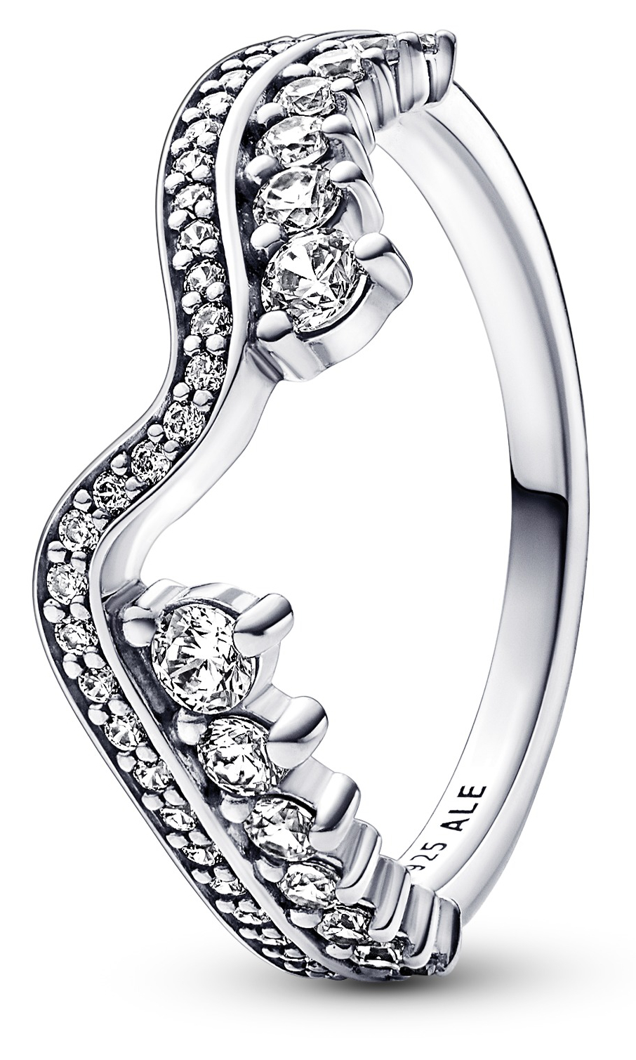 Pandora Timeless Ring Stackable Sparkling Asymmetric Wave ring 192543C01 vågformade ringen är i sterling silver och ytan är helt täckt med klara kubiska zirkoner. Pandora ringar levereras i tillverkarens originalförpackning.
