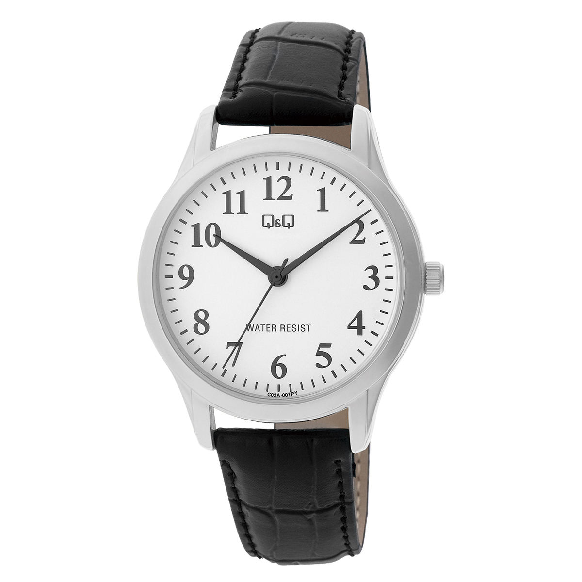 Q&Q C02A-007PY är ett elegant armbandsur för män som kombinerar en silverfärgad metallboett, en klar urtavla som skyddas av mineralglas och ett svart konstläderarmband. 38 mm bred boett gör klockan till ett lätt och coolt tillskott till din vardagsgarderob. Armbandet är 230 mm långt och 18 mm brett, och klockan drivs av ett kvartsurverk och är stänkvattensäker (30m/3atm) för att klara normal daglig användning.