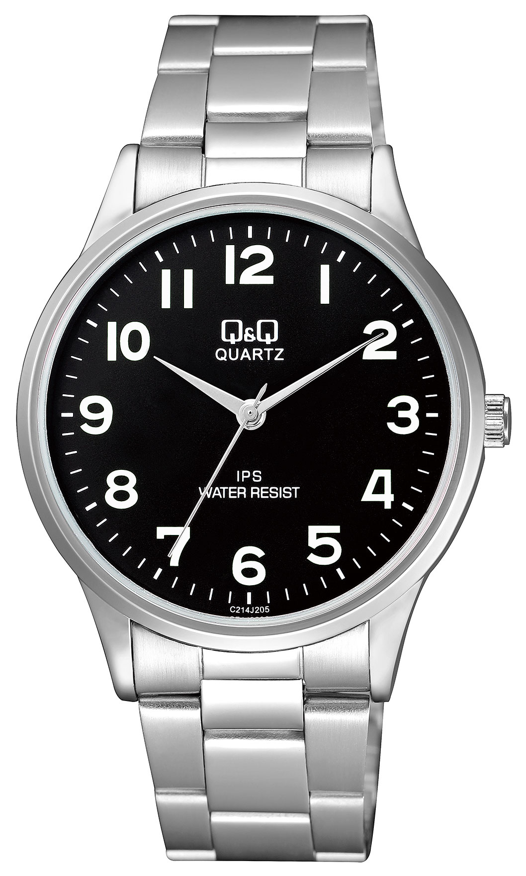 Q&Q C214J205Y är ett tidlöst armbandsur för män som är attraktivt och lämpligt för klädsel i flera stilar. Klockan har en 40 mm bred och 8,2 mm tjock metallram och väger 80 gram. Armbandet är 20 mm brett och 210 mm långt. Slitstarkt mineralglas skyddar urtavlan från stötar. Miyota 2035 kvartsverk har en gångreserv på ca. 3 år och klockan är stänksäker (30m / 3atm), så den tål normal fukt som regn eller stänk från handtvätt.