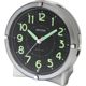 Väckarklockan Rhythm CRE807-NR19 har självlysande siffror och händer. Väckarklockan har en tyst sekundvisare, pipande alarm, en klockringning och belysning. Plastkroppen mäter 11,8 x 11,8 x 7,2 cm och alarmklockan väger 205 g. Förpackningen innehåller ett C-batteri. Rhythm-bordsväckarklockor garanteras i ett år.