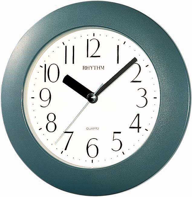 Väggklockan Rhythm 4KG652-WR08 är idealisk för till exempel badrummet, eftersom den är fuktsäker. Klockan har en grå ram och en vit urtavla med mycket tydliga svarta siffror. Plastramen mäter 17,8 cm i diameter och 4,9 cm i tjocklek. Klockan väger 500 g. Förpackningen innehåller ett AA-batteri. Rhythm väggur har en garanti på ett år.