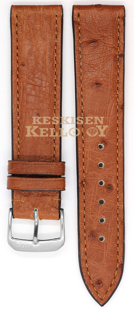 Rios1931 Maison 23005 är ett brunt läderarmband av äkta strutsskinn. Armbanden är 18 mm och 20 mm breda. Längden är 114/82 mm. Du kan välja mellan ett silver- eller guldspänne.