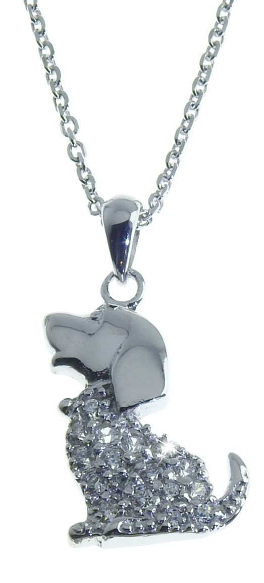 Rodinerat hundsmycke 45cm G60-R/ANK040/45 prydd med kubiska zirkonia stenar. Tillverkad i sterling silver. Kedjas längd är 45 cm.