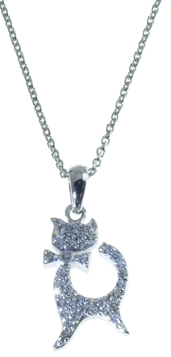Rodinerat Kattsmycken 45cm G2-R/ANK040/45 prydd med kubiska zirkonia stenar. Tillverkad i sterling silver. Kedjas längd är 45 cm, berlockens mått: 22 x 13 mm.