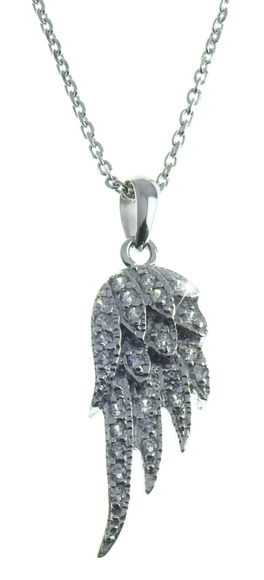 Rodinerat vingsmycke 45cm G20-R/ANK040/45 prydd med kubiska zirkonia stenar. Tillverkad i sterling silver. Kedjas längd är 45 cm, berlockens mått: 11 x 27 mm.