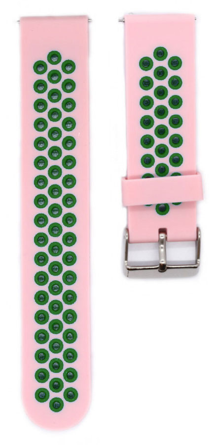 Det här rosa-turkosa silikonarmbandet är hudvänligt och andas bra. Det sportiga utseendet ger säkert din klocka en ny look. Armbandet har ett snabbfäste som gör det enkelt att byta armband.