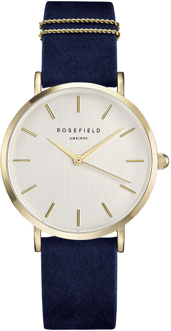 Rosefield West Village WBUG-W70 Velvet Blue - Gold har en guldfärgad boett och en vit urtavla. Armbandet är tillverkat av läder. Boettens bredd är 33 mm och tjockleken är 7 mm. Längden på armbandet går att justera (12-16 cm). Vi erbjuder garanti upp till två år och din klocka skickas hem i originalboxen.