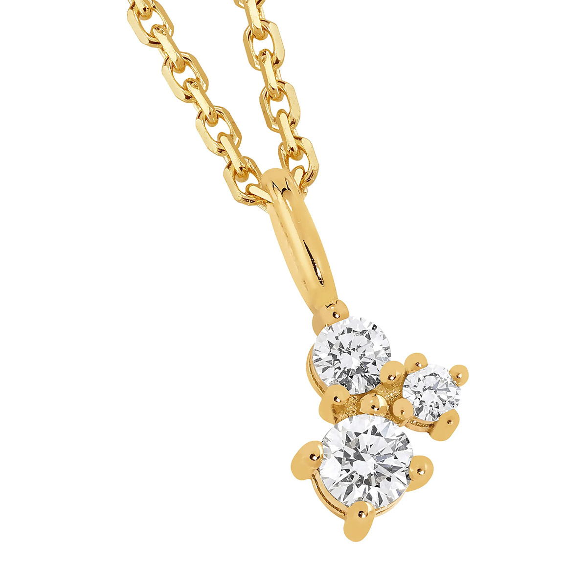 Ett vackert diamanthänge från Sandbergs Aamukaste-kollektion. Örhängena är tillverkade av 14 karat gult guld. Guldet som används i Sandbergs smycken är det renaste certifierade återvunna guldet. Hänget har tre vackra briljantslipade VS-diamanter, med en totalvikt på 0,16 ct och en sällsynt färglös Top Wesselton-kvalitet. Kedjan ingår inte i priset!