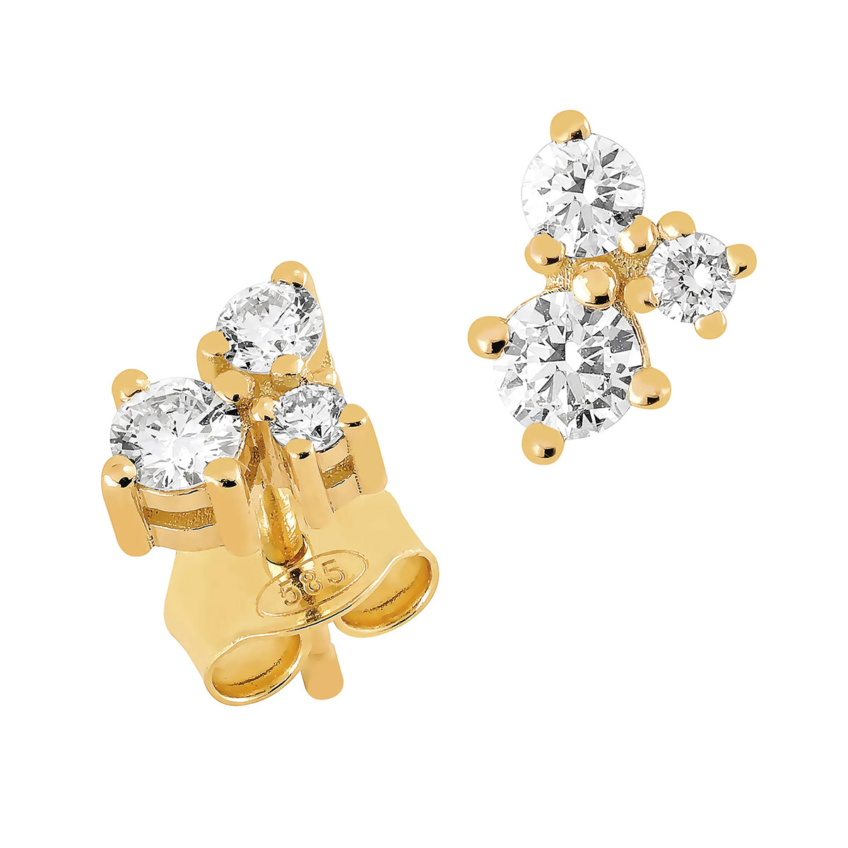 Vackra diamantörhängen från Sandbergs Aamukaste-kollektion. Örhängena är tillverkade av 14 karat gult guld. Guldet som används i Sandbergs smycken är det renaste certifierade återvunna guldet. Örhängena har tre briljantslipade diamanter med en totalvikt på 0,32 ct och den sällsynta Top Wesselton-färgen. Örhängena har en robust knappknäppning.