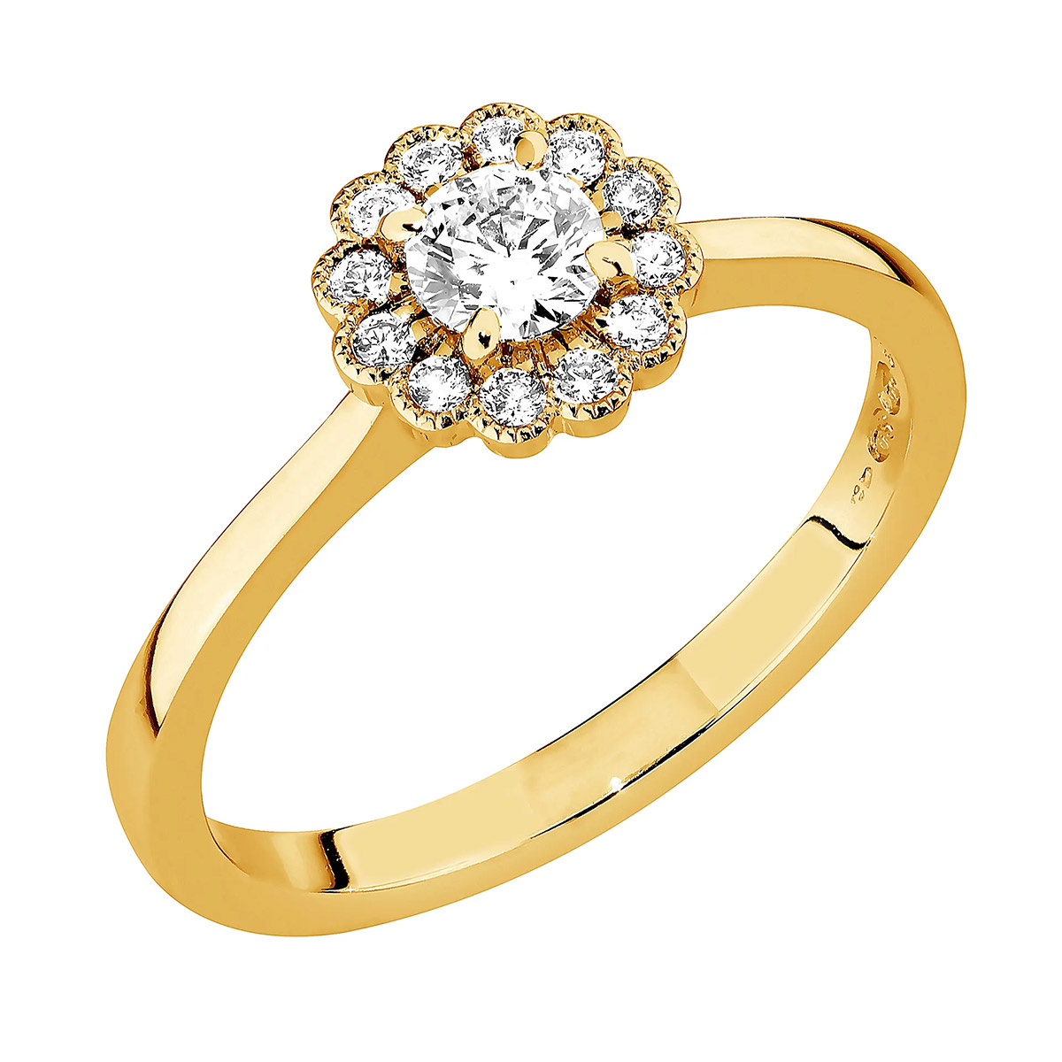 Sandberg Flower Meadow Diamantring Halo 0.34ct M-882k är ett delikat och romantiskt val som kombinerar skönhet, kvalitet och ansvar. Denna ring är tillverkad av 14 karat gult guld, och dess mittdiamant är en 0.23 karat briljantslipad diamant som lyser starkt. Halo-ringens unika karaktär framhävs vackert i den blomformade halo-dekorationen som bildas av diamanterna, vilket bidrar till ringens elegans och framhäver diamanternas magnifika briljans. Ringen har totalt 13 diamanter, och deras färg är den sällsynta färglösa Top Wesselton, vilket garanterar diamanternas exceptionella ljusstyrka och skönhet. Det certifierade återvunna guldet som används i Sandbergs smycken är ett utmärkt tillskott ur ett ansvarsperspektiv. Denna ring är det perfekta valet om du letar efter något romantiskt, tidlöst vackert och samtidigt etiskt producerat.