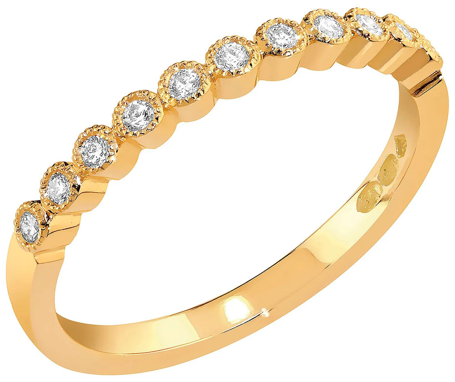 Sandberg Suvituuli M-110k diamantring utstrålar en romantisk atmosfär från den gamla världen. Den eleganta halvalliansringen har 11 briljantslipade diamanter infattade i en vacker milgrainkantad infattning. Diamantslipningen ger diamanten en vacker lyster. Skenan är 1,8 mm i bredd och ringen är tillverkad av 14K guld. Guldet som används i Sandbergs smycken är det renaste certifierade återvunnet guld.