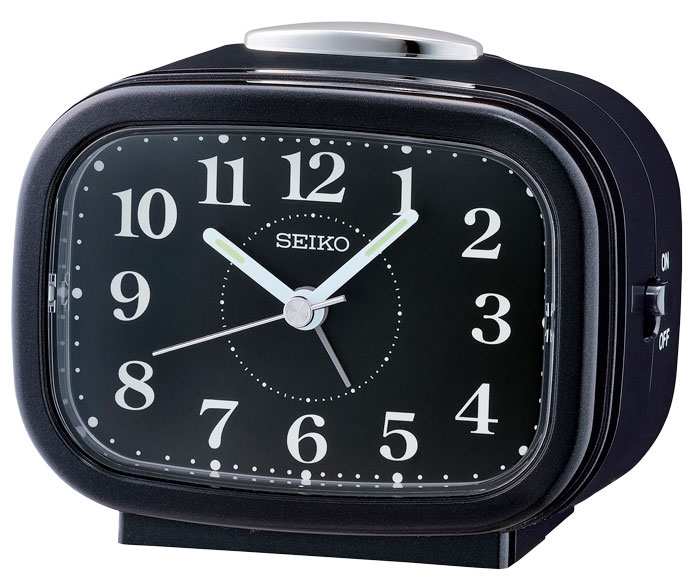 Seiko QHK060J är en snygg och praktisk väckarklocka för ditt nattduksbord. Den har också den perfekta storleken för din resväska, vilket gör den enkel att ta med sig när du reser. Väckarklockan har en tyst glidande visaren, en snooze-funktion och tydliga vita numeriska index vilket skapar en fin kontrast mot det svarta urtavlan. Väckarklockan mäter 9,9 cm i längd, 6,1 cm i bredd och 8,4 cm i tjocklek. Seiko QHK060J drivs av ett C-batteri.