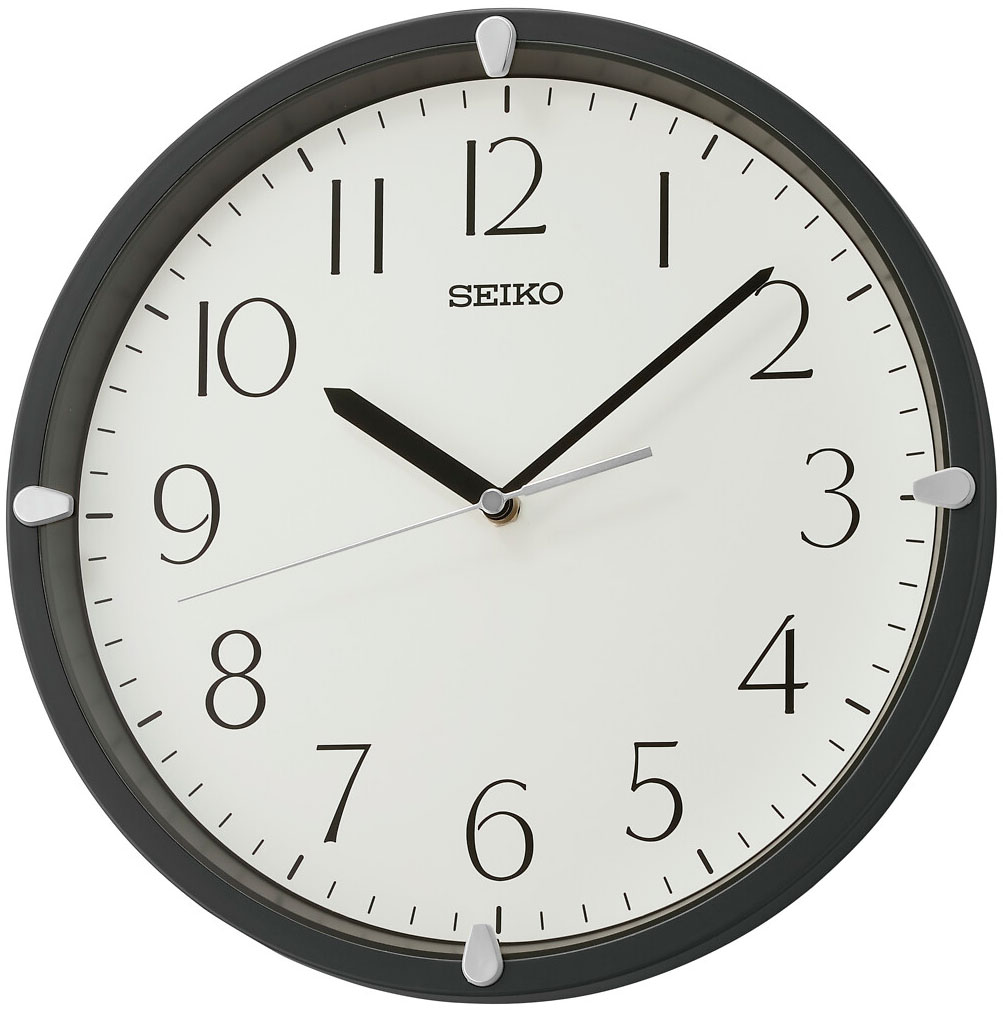 Seiko QHA007J är en traditionell väggklocka med arabiska numeriska index, perfekt för både hem och kontor. Klockan är tillverkad av plast och har en svart ram med en vit urtavla. På urtavlan finns en minut- och timvisare och en tyst glidande sekundvisare som löper mjukt framåt. Väggklockans baksida har en öppen punkt för enkel och smidig upphängning på väggen. Klockan mäter 30 cm i diameter och är 4,2 cm tjock. Seiko QHA007J drivs av ett AA-batteri.