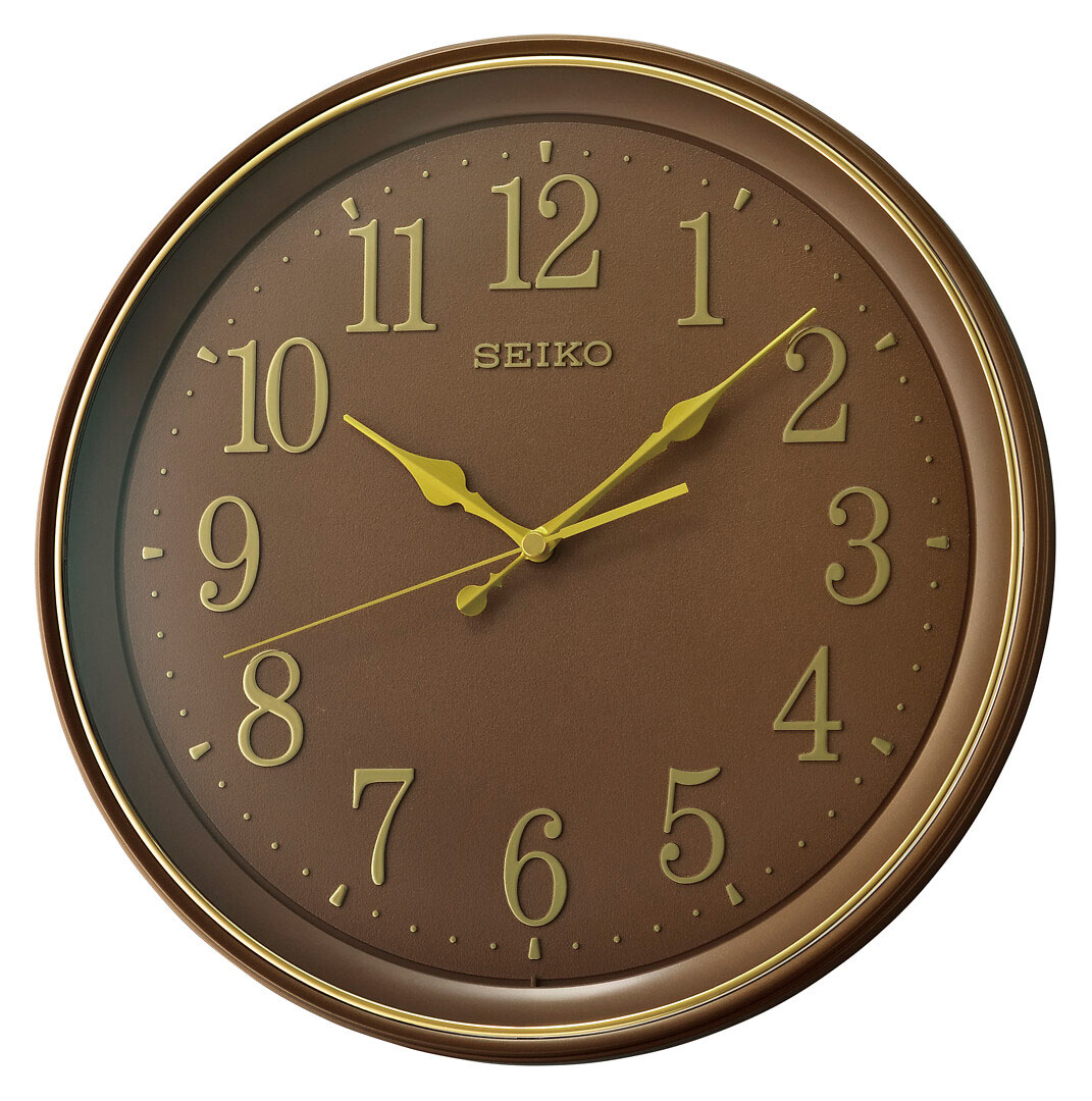 Seiko QXA798B väggklocka i metallbrun har snygga guldfärgade 3D-siffror och visare. Den analoga väggklockan har en plastkropp och en tyst sekundvisare som garanterar tyst gång. Klockan är 34 cm i diameter och 4,5 cm tjock. Klockan drivs med ett enda AA-batteri och är den perfekta kombinationen av stil och funktionalitet för alla rum.