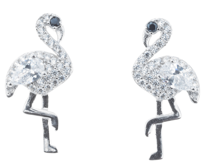 Silver Bar Flamingo pave stiftörhängen 18 mm 8418 passar till alla som älskar flamingors! Örhängenas längd är 18mm och de är dekorerade med gnistrande zirconia.