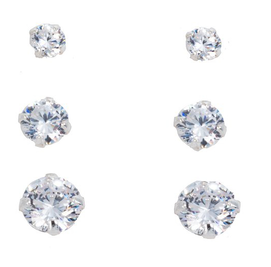 Silver Bar smyckeset med tre par zirkonia örhängen white 8738