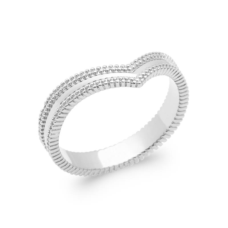 ‌En fin tidlös V-shaped chevron ring i sterling-silver med millgrain dekoration. Chevron ring symboliserar kärlek och skönhet. Bredd 4 mm.