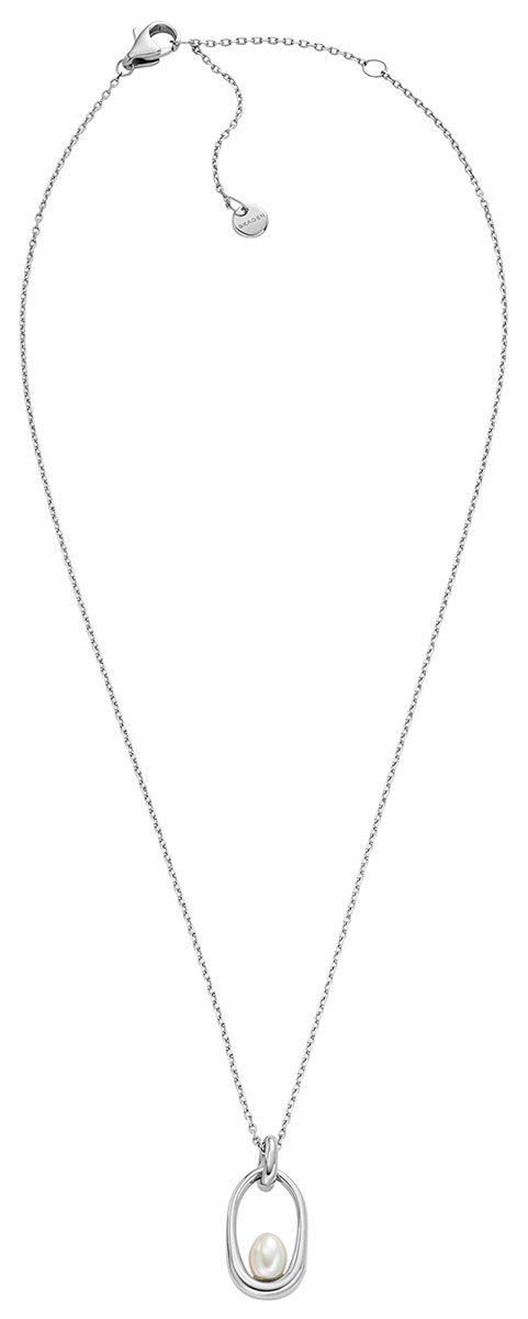 Skagen Agnethe SKJ1796040 pärlhalsband är tillverkat av silverfärgat rostfritt stål, dekorerat med en vacker ljus pärla. Hängets storlek är 11,5 x 20 mm och halsbandets längd är 40,6 cm. Skagens smycken, inspirerade av den minimalistiska danska designen, levereras i tillverkarens originalförpackning.
