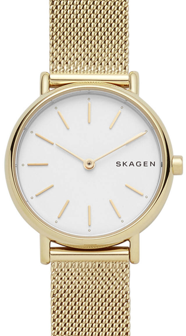 Guldfärgat Skagen Signatur Slim SKW2693 är en kvinnlig klocka som passar till både vardag och fest. Boetten är tillverkad i rostfritt stål och den har en guldig färg. Boettens bredd är 30 mm och tjockleken är 6,4 mm. Armbandets bredd är 14 mm. Vi erbjuder garanti upp till två år och din klocka skickas hem i tillverkarens originalförpackning.