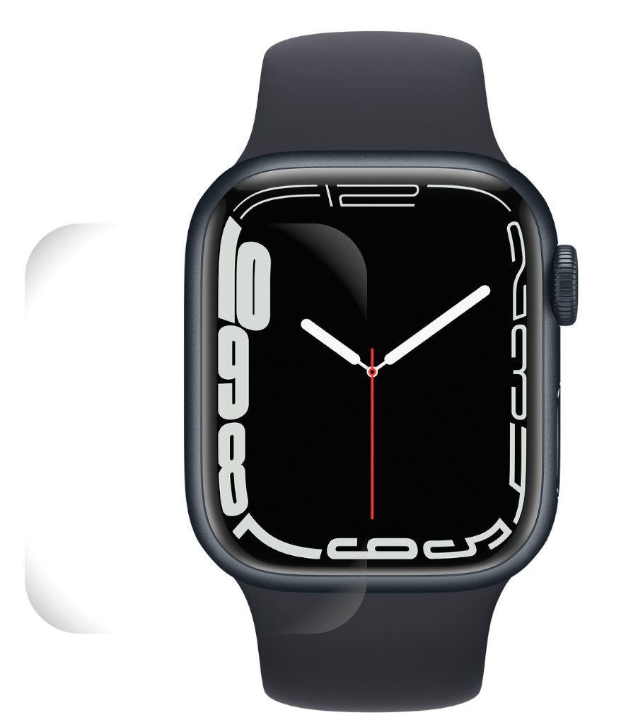 OBS! Skyddsglaset är avsikligt lite mindre än klockans skärm på grund av skärmens form, och för att skyddsglaset skulle också vara lättare att montera. Detta displayskydd passar endast till Apple Watch 7 41 mm modeller.