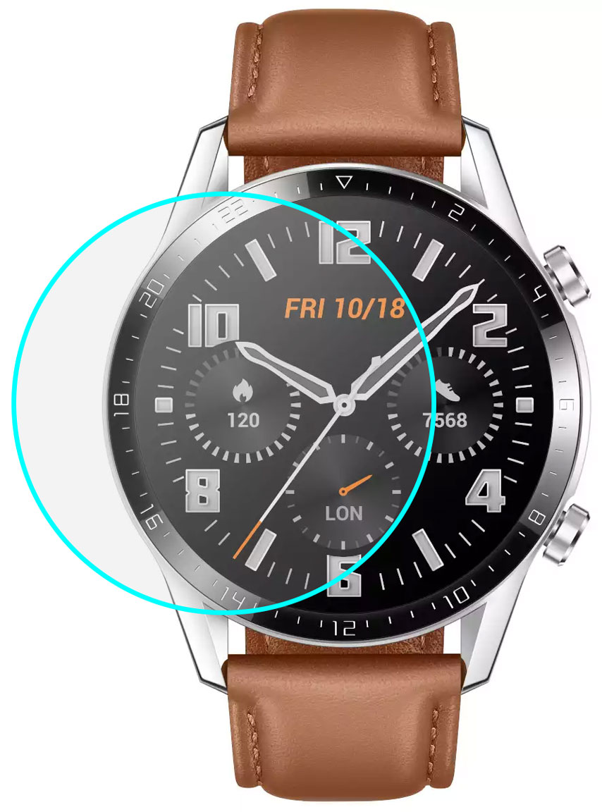 Huawei Watch GT skyddglass för Huawei Watch GT Sport och Classic modeller. OBS! Skyddsglaset är lite mindre än klockans skärm grund av skärmens form, och för att skyddsglaset skulle också vara lättare att montera. Diameter 38 mm.